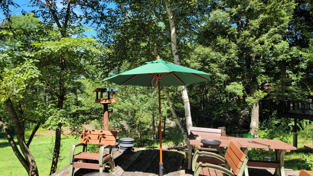 おっと、社主さまがガーデンパラソルをセットしたな。今日は「お外ランチ」なんだな!