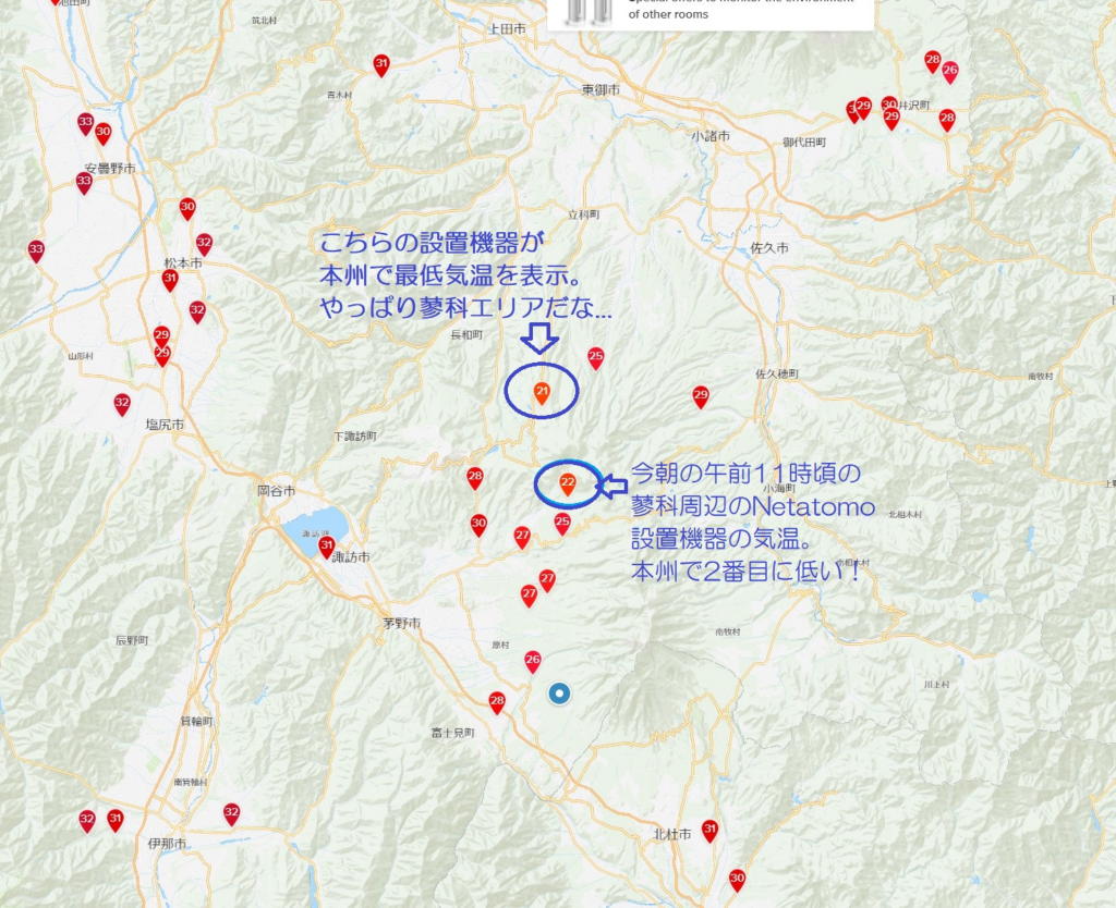 蓼科周辺にも何件か Netatmoを設置している場所があり、その内の1カ所が「夏場になると本州で最も(或いは2番目に)低い気温」を示している事が多いのである。