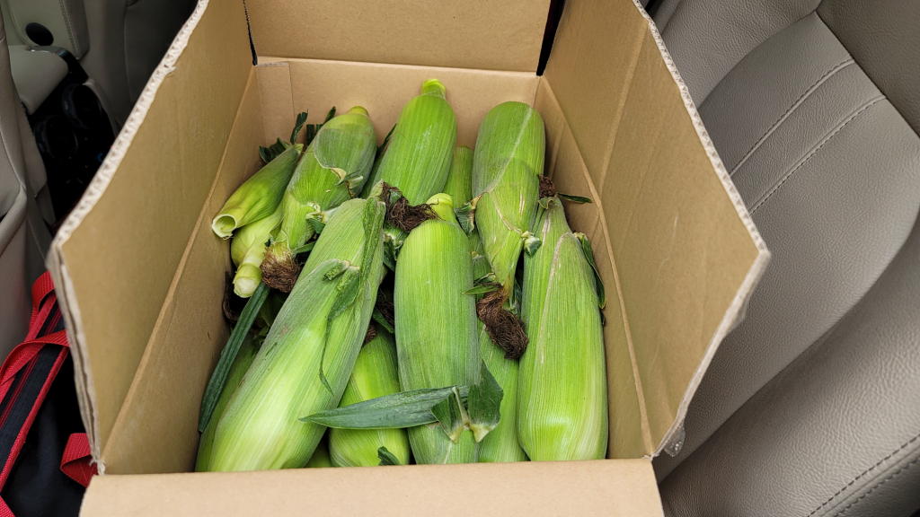 小池農園さんの開店直後に予約したトウモロコシを受け取りに行った。