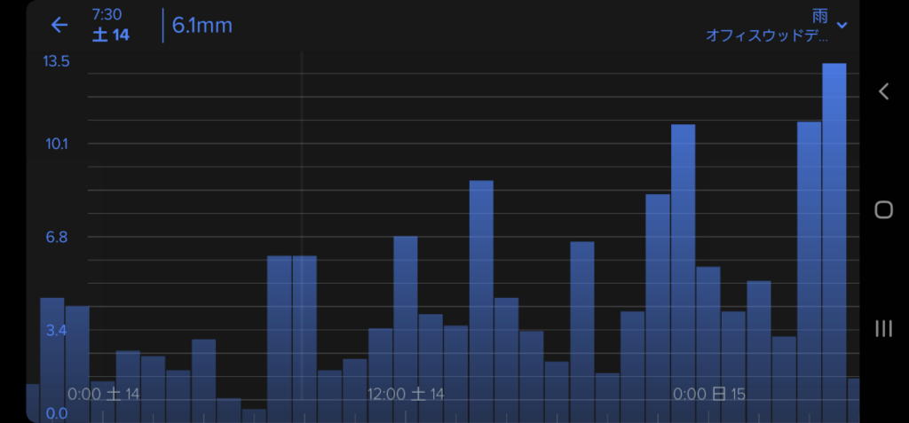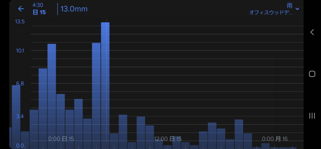 オフィス周辺の気象に関しては詳細な情報収集が可能なのだが、残念ながら「八ヶ岳の中腹から上」にかけて降った雨の量は、直接確認する事が出来ない。