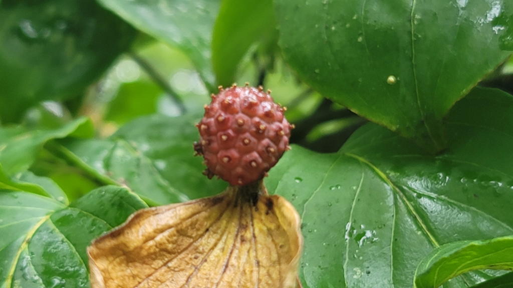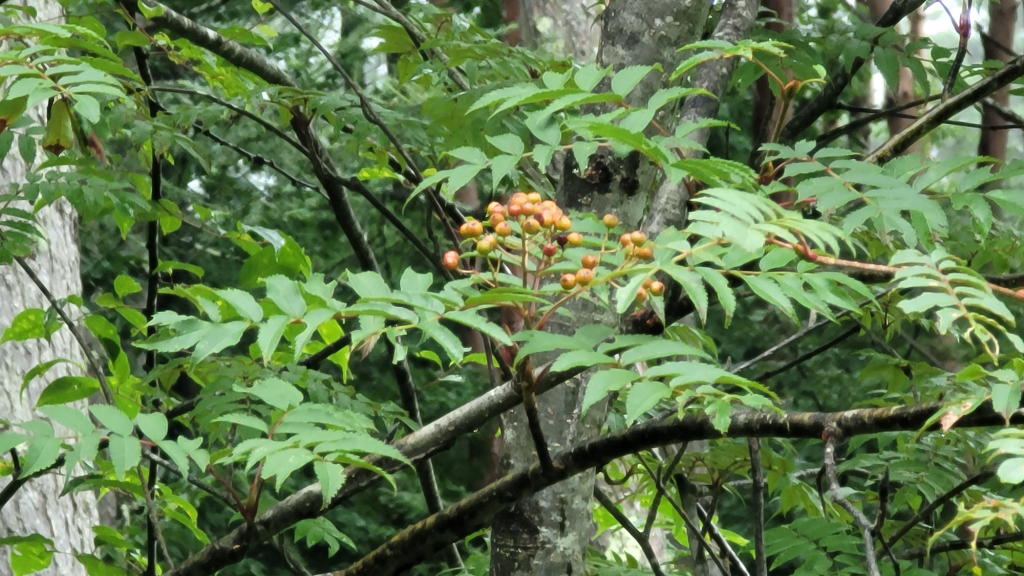 今年は「大豊作」のヤマボウシやナナカマドの実は、既に色付き始めてきた。