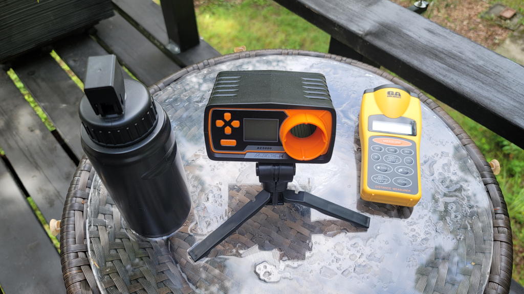 メインウッドデッキの上にお手製のターゲットを置き、オフィスウッドデッキに射場を設定。