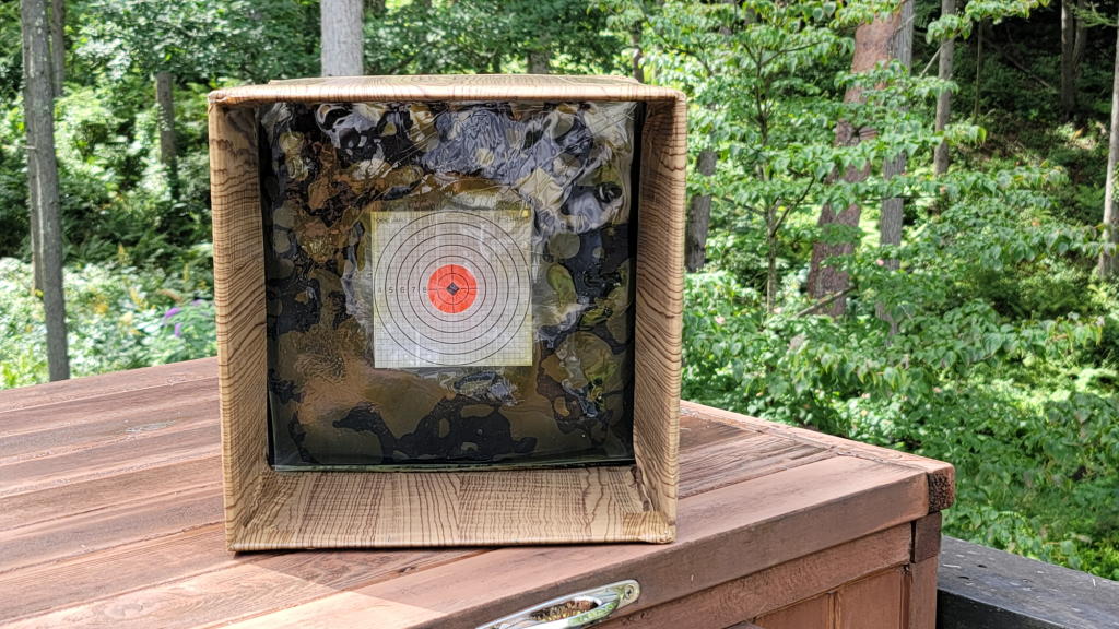 ターゲットまでの距離は22.3m。これなら、ターゲットの箱の外に外れる弾はほとんど無いだろう。