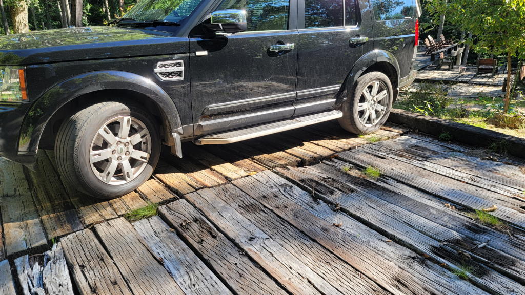 枕木駐車場は車重2.6t超のD4の重さを支えているので、やはりその影響が大きいのだろう。