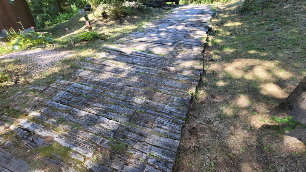 部材としての劣化は着実に進み、今年の5月には、初めて枕木駐車場で枕木ブロックを使った補修作業を行った。