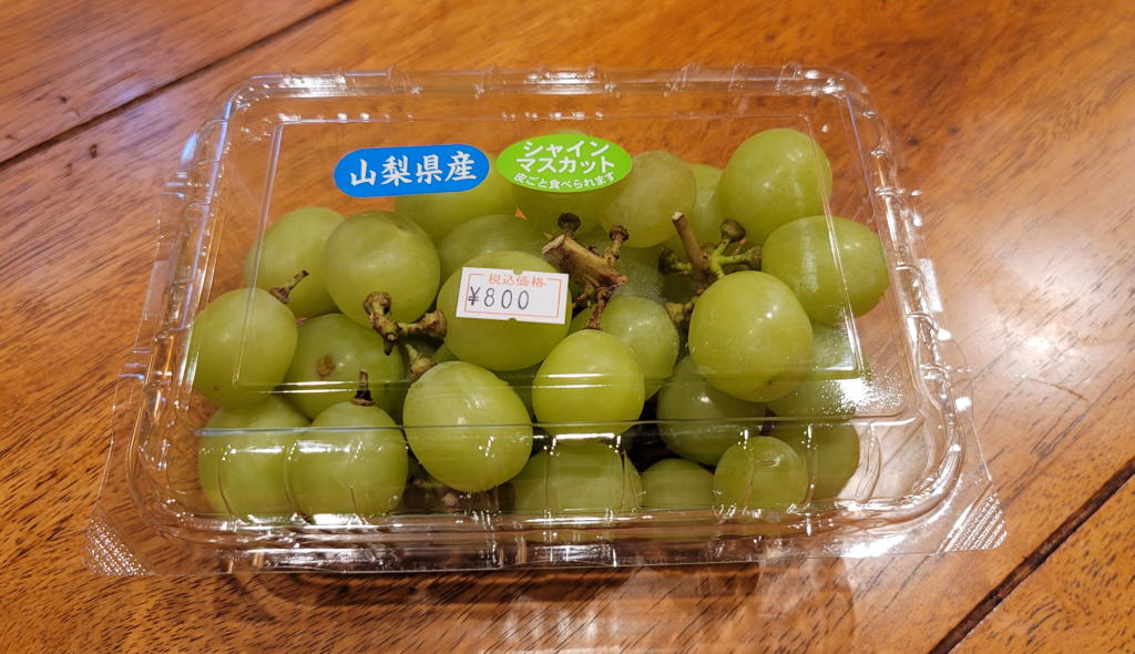 「シャインマスカット」のパックだった。しかも値段は 800円(税込み)。