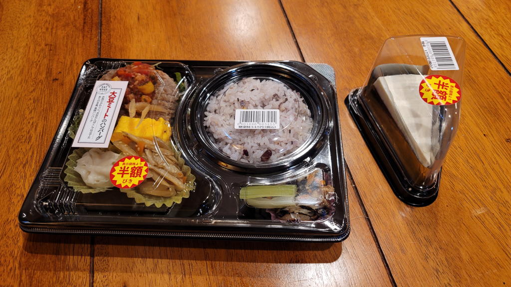 残っているお弁当は「大豆ハンバーグのヘルシー弁当」が1個だけ。どうしようか?