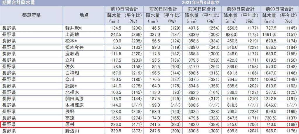 過去60日間の累積雨量は平年の2.06倍、30日間はなんと3.89倍である。