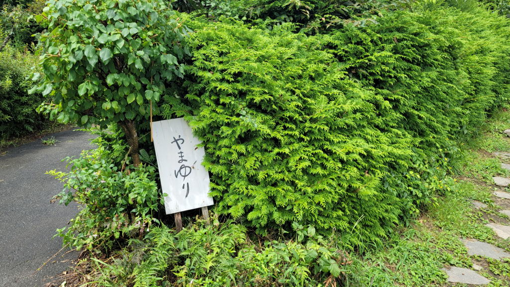 D4を駐車して、お店までの細い道を50m程歩いて下ると「やまゆり」の看板を発見。