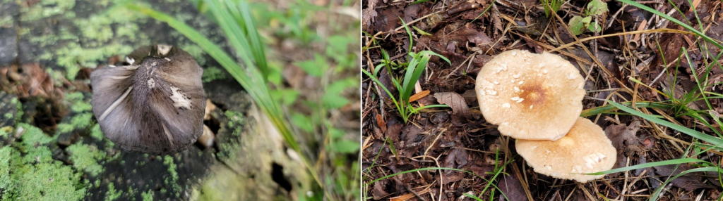 この時期は、1年の内で最も多くの種類のキノコが敷地内に顔を出す。