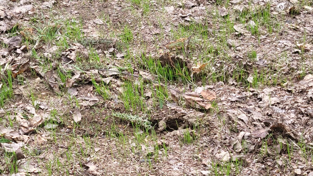 ちょっと気になっていたのは、堆積していた広葉樹の落ち葉を掻き出して剥き出しになった地面に、無造作に種を蒔いたスペースである。