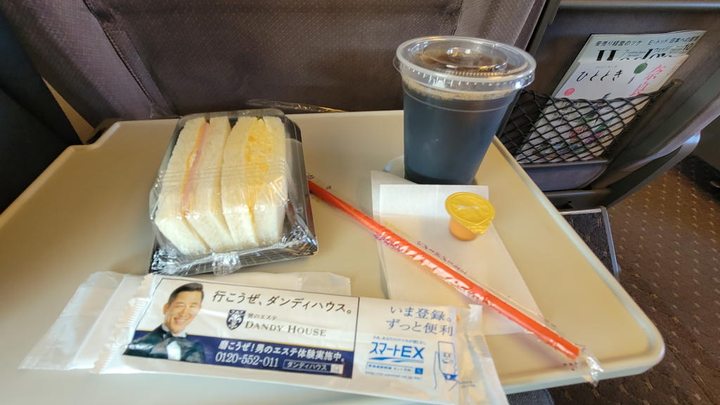 朝の新幹線車内では、お気に入りの「ワンコインモーニング」を楽しんだ。