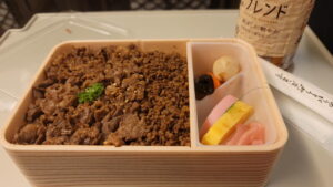 帰りの新幹線で京都駅を過ぎてから、お弁当を味わった。