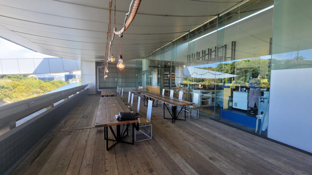 博物館・美術館合わせた滞在時間を1時間20分に定めて見学開始しようと思ったら、エントランスで美術館の2Fにライブラリー風のオープンカフェがある事に気が付いた。