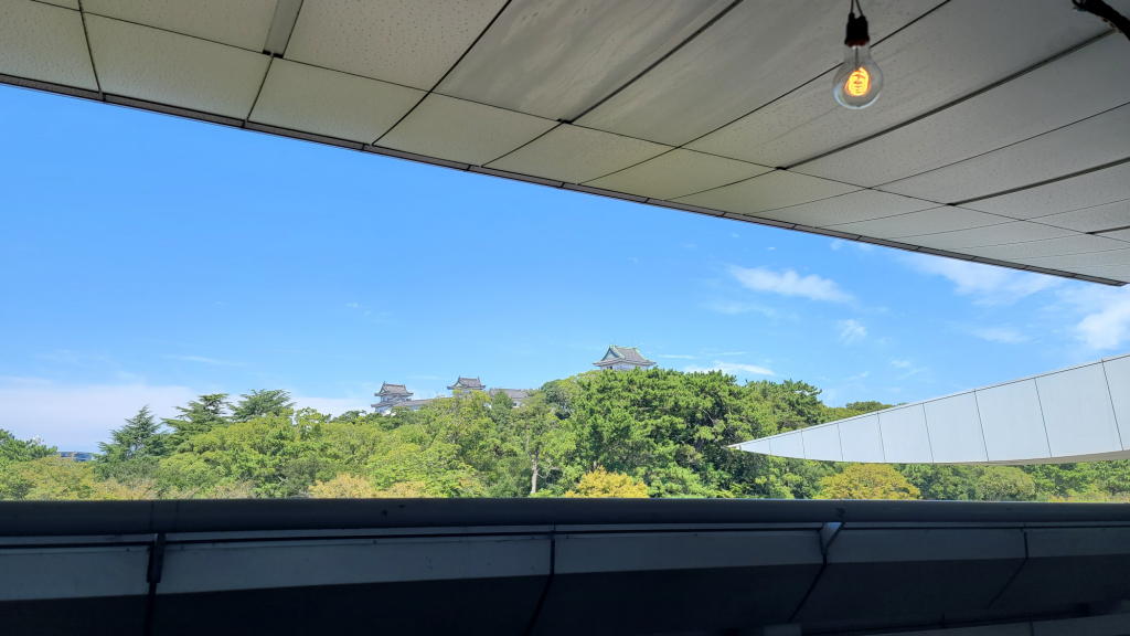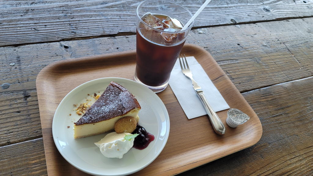 屋根付きオープンカフェは、お城を眺望できいる絶好のロケーションで、ケーキセット(820円)も美味だった。