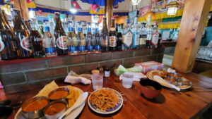 カレーの外食は久し振りだったので、よせばいいのに2人共、タンドリーチキン(1個)とシークカバブ(2本)もセットとなった「ランチバイキング(税込み1,250円)」を注文。