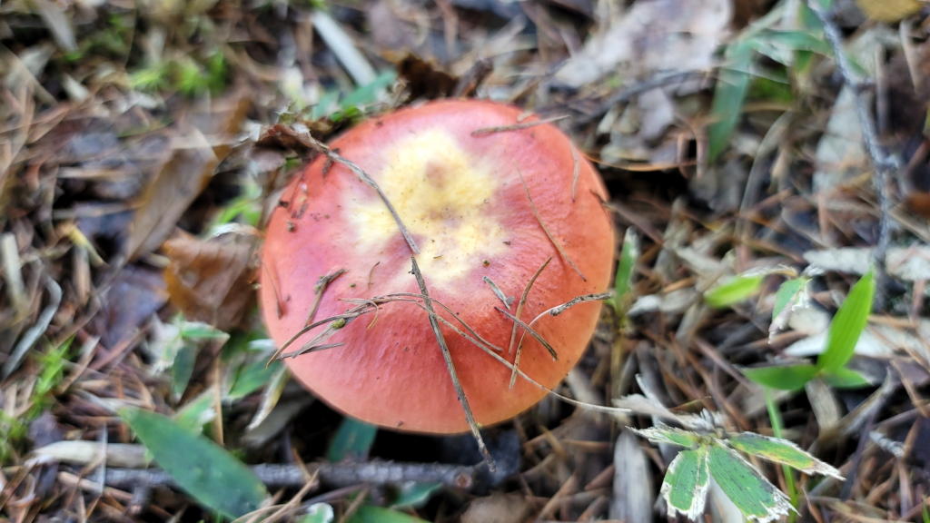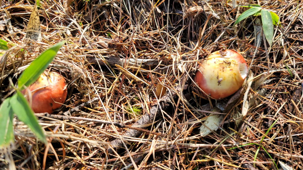 さらに、これまで敷地内では滅多に見かけなかった「赤いキノコ(ベニダケ系)」のシロも発見した。