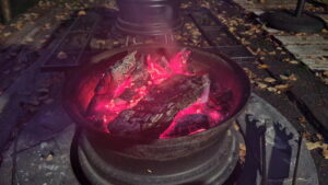 熾火になった午後6時過ぎからガーデンチェアに座って、ただ焚き火を眺め続けた。