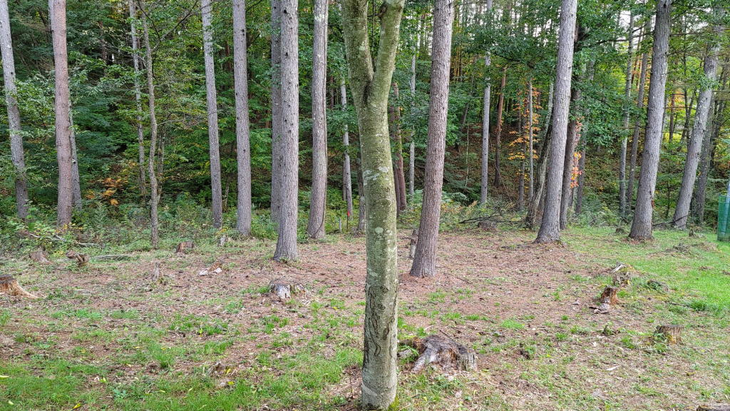 そして、ツリーハウスの建築予定地である三角地には、ハンモックを掛けるのに適した唐松や広葉樹がしっかりと残してある。