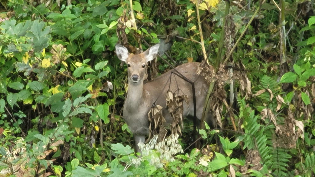 もうひとつの特徴は、この鹿は、私と明らかに目が合っても逃げようとしない事だった。