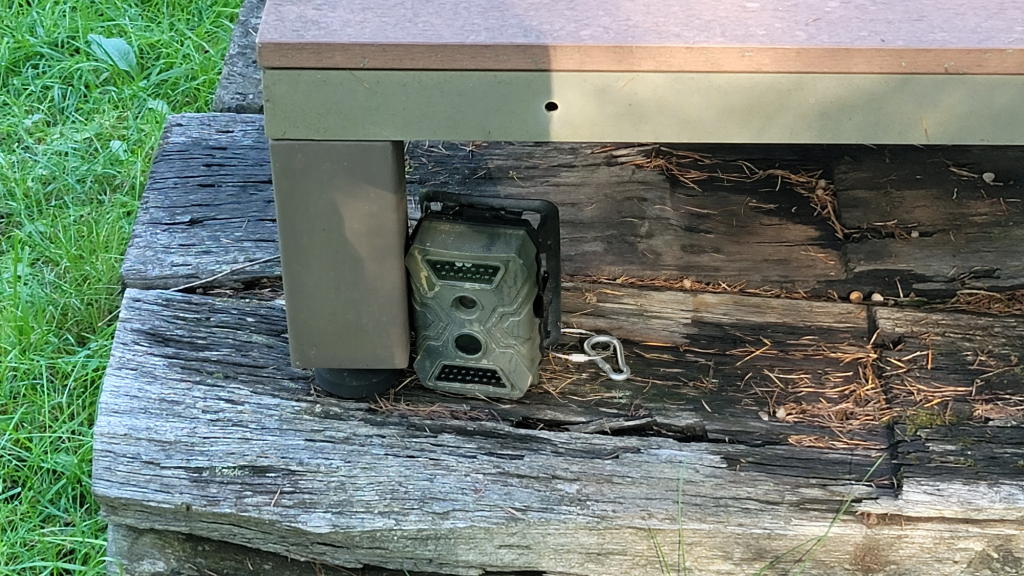 オフィスに戻ろうとした際に、夜間の動物行動監視カメラ「ホークアイ」を縁台の足元に8月下旬から設置してある事を思い出した。