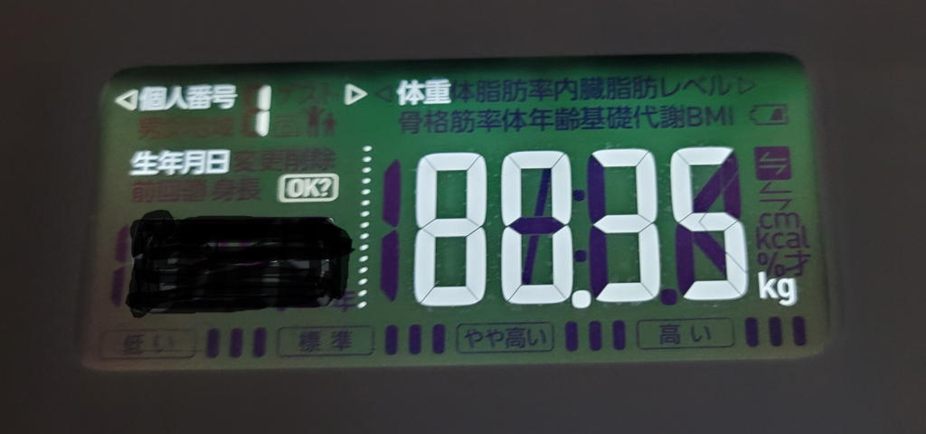 ドキドキしながら午後6時過ぎに体組成計に乗った。