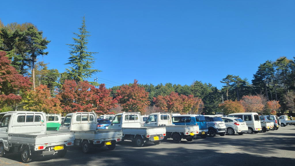 小淵沢に向かう時には2~3台だったので、その後もどんどん作業する人達が集まってきたんだな。