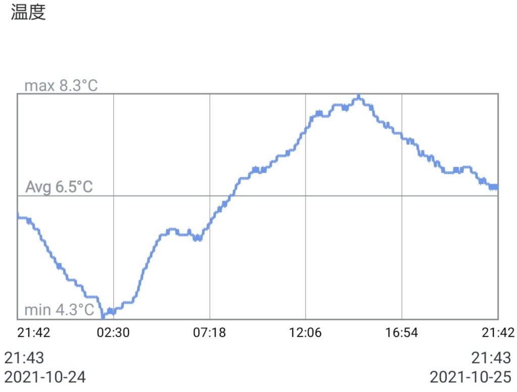 オフィスウッドデッキに設置した温湿度モニターの記録をNoteくんで確認したら、寒いわけである。