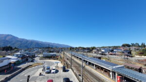 実は、小淵沢駅の3F(屋上)の「展望スペース」は、八ヶ岳、南アルプス、富士山のすべてが眺望できる、お気に入りのスポットのひとつなのである。