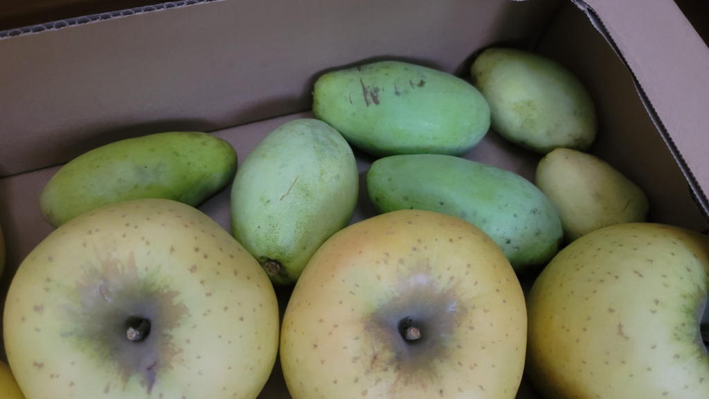 カリンにちなんで八ヶ岳の庭に植樹した「花梨(カリン)」の樹は、今年6個の実をならした。