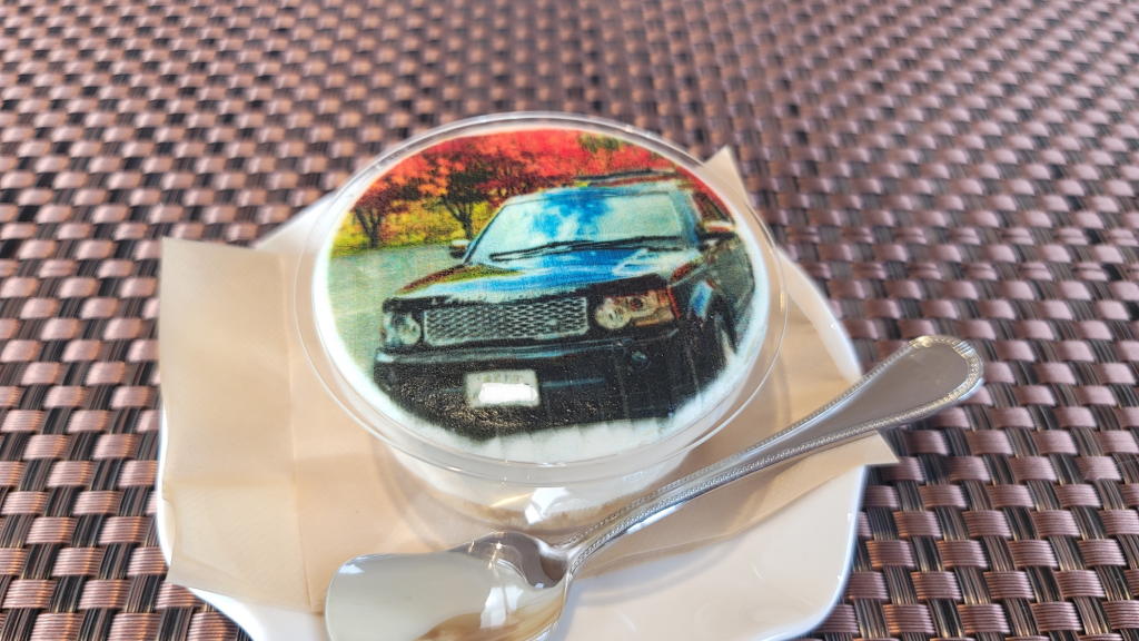 カフェでは、自分の好きな写真をドリンクやレアチーズケーキに描く「ホイッププリント」サービスを注文できるのだ。