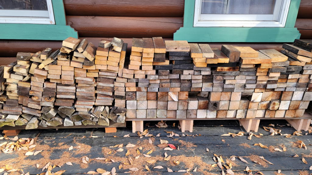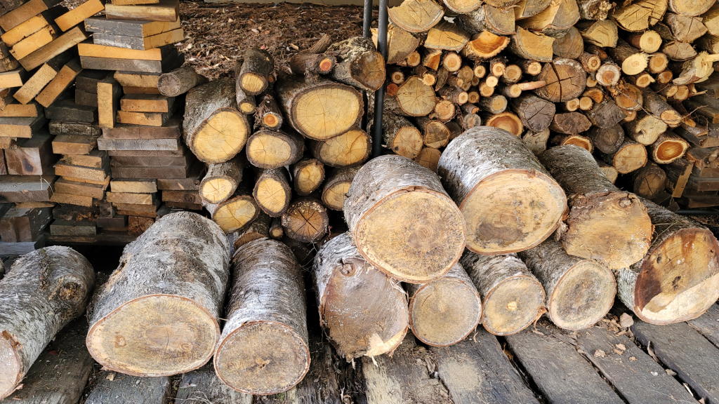 それ以外にも、コナラの木の枝落としなども自分達で行ってきたので「広葉樹の薪候補」となる幹や枝のストックがかなり貯まってきた。