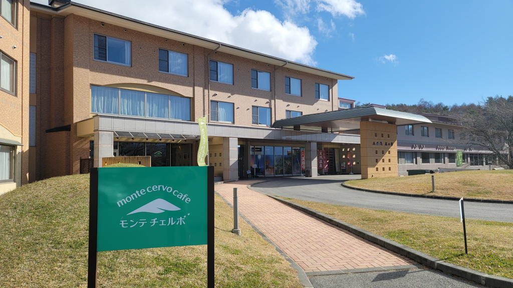 鹿の湯の駐車場にD4を置いて、モンテチェルボカフェの店内に入った。