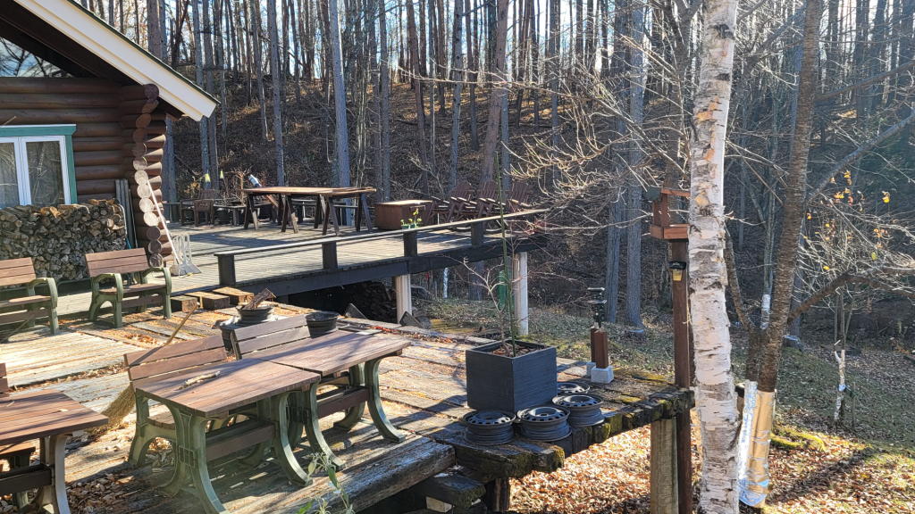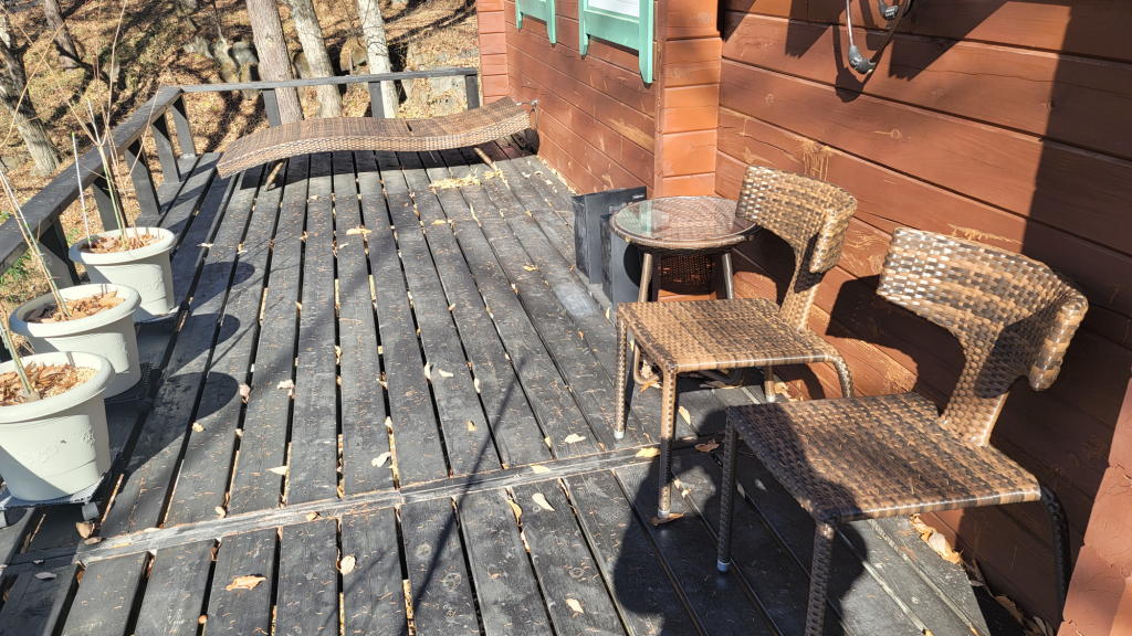 我が八ヶ岳拠点のウッドデッキ総面積は137㎡(約75畳)ある。