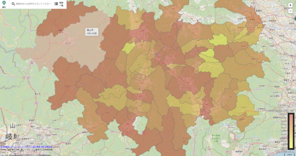 そして、各市町村の上にカーソルを置けば、具体的な計数も表示してくれる。
