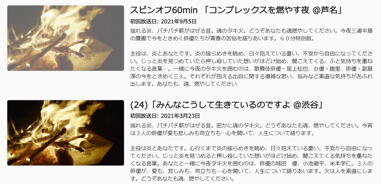 元々、昨年の10月から放送が始まった「魂のタキ火」は、すべてではないが、かなりを視聴していた。