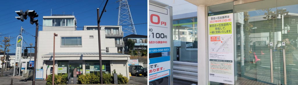 変化の極め付けは「三井住友銀行の出張所」が、今年の8月に新百合ヶ丘支店に統廃合され、営業を終えた事だろうか。