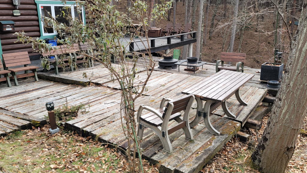 600坪の敷地を枕木スロープで区分して、社主さまが東側、私が西側の落ち葉ゾーンを担当。