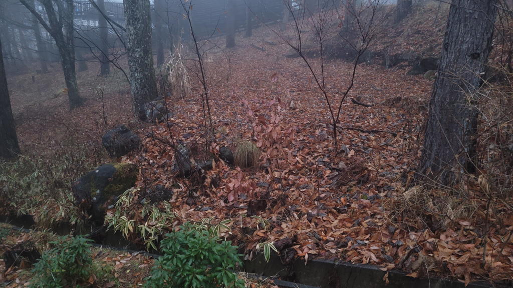 ここは元は「大型のBBQコーナー」だったのだが、既に施設は撤去され、更地のまま、落ち葉が無造作に積もっていた。