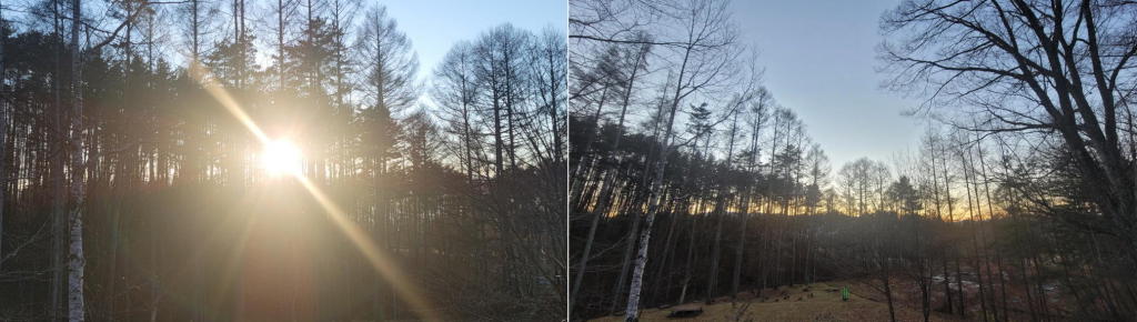 この時期は、財産区林の樹間に夕陽は沈んでいく。私はこの光景がかなり気に入っているのだ。今日も仕事は忙しかったが、穏やかな1日だったな…