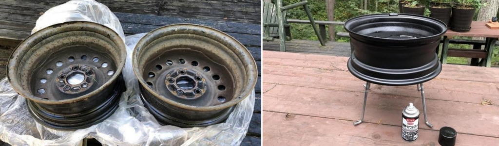 だが、現在の焚き火台は、ピットイン富士見さんから無料で貰ったスチール・ホイール(鉄ちん)を私が小細工したDIYモノだ。