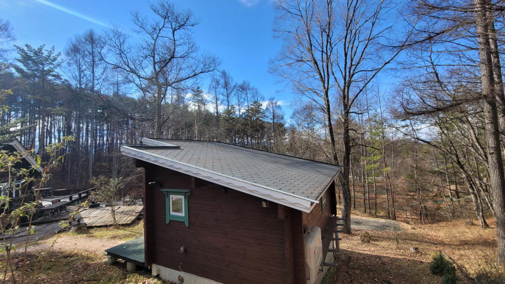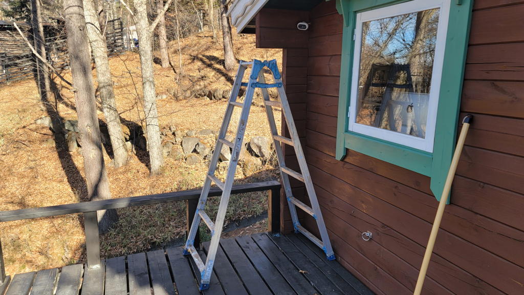 本宅の方はガルバリウム鋼板で傾斜も急な屋根なので、落ち葉の処理は不要だ。