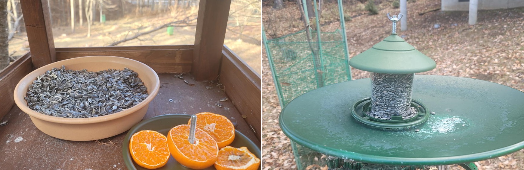 両店舗ともに、ヒマワリ殻のひとつ無く、野鳥さん達がまったく来店していない事は明らかだった。