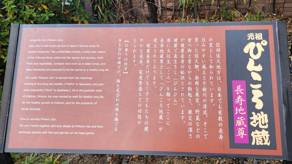 そんなわけで、『健康で長生きし(ぴんぴん)、楽に大往生(ころ)』という願いを叶えてくれるという佐久の「ぴんころ地蔵さま」へのお参りを私達夫婦は欠かさない。