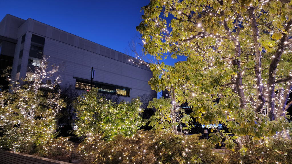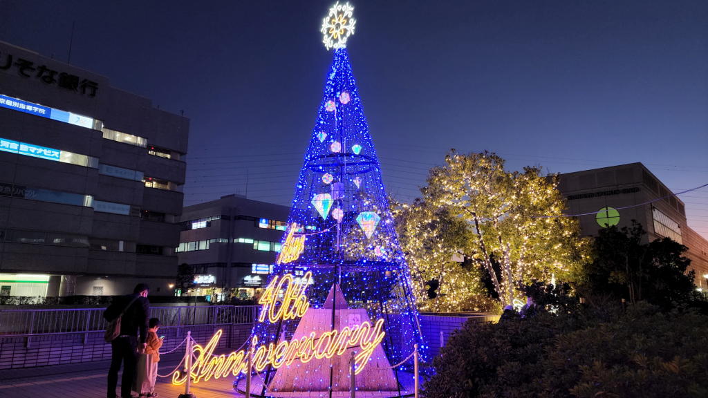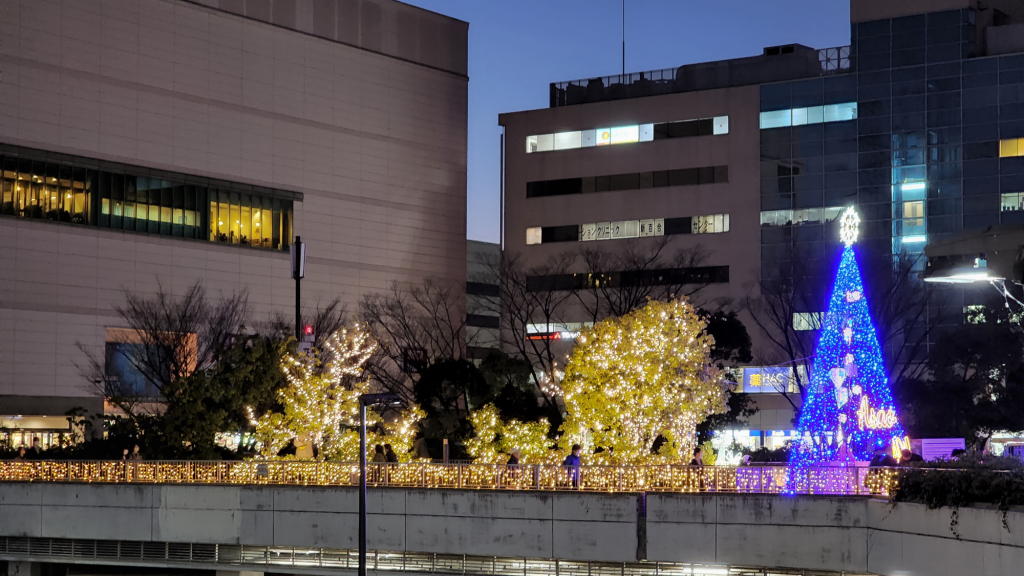 やがて、駅周辺のイルミネーションが控えめではあるが、時間差で灯り始めた。