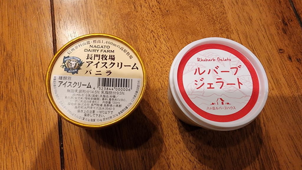 1時間程ゆっくりと鹿の湯に浸かった後、売店で「長門牧場アイスクリーム バニラ」と「ルバーブのジェラート」を購入。