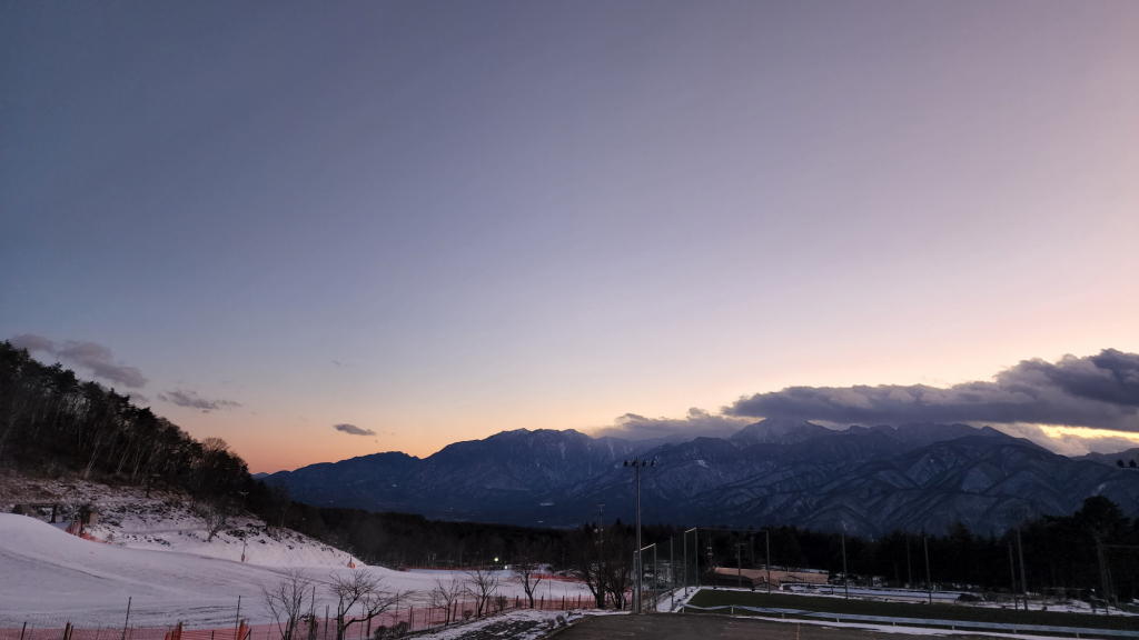 スキー場の駐車場から見る南アルプスの山々が美しかった。
