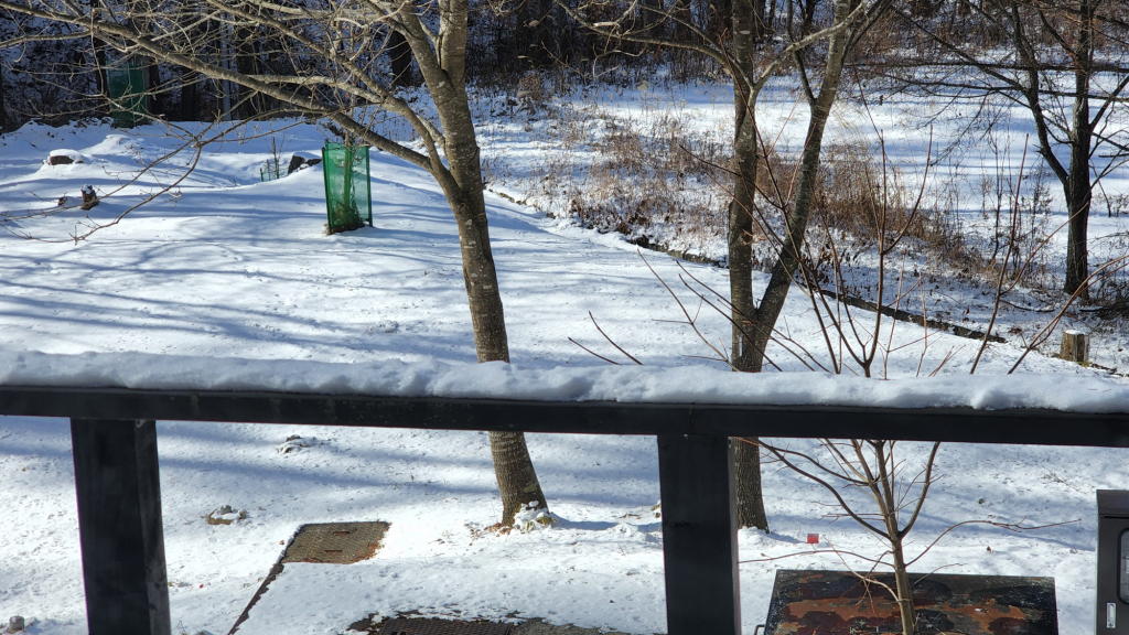 敷地内は、ライブカメラで確認した通り雪で覆われていたが、積雪は2~3cmって感じかな。