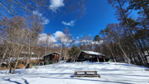 ああっ、加えて八ヶ岳ブルーの空の下、純白の雪に覆われた庭の様子を眺めるのも最高だな。
