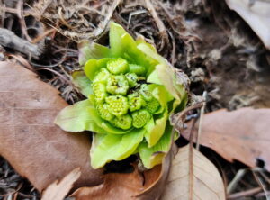 八ヶ岳の敷地内の至るところで蕗の薹(フキノトウ)が顔を出し始めている。